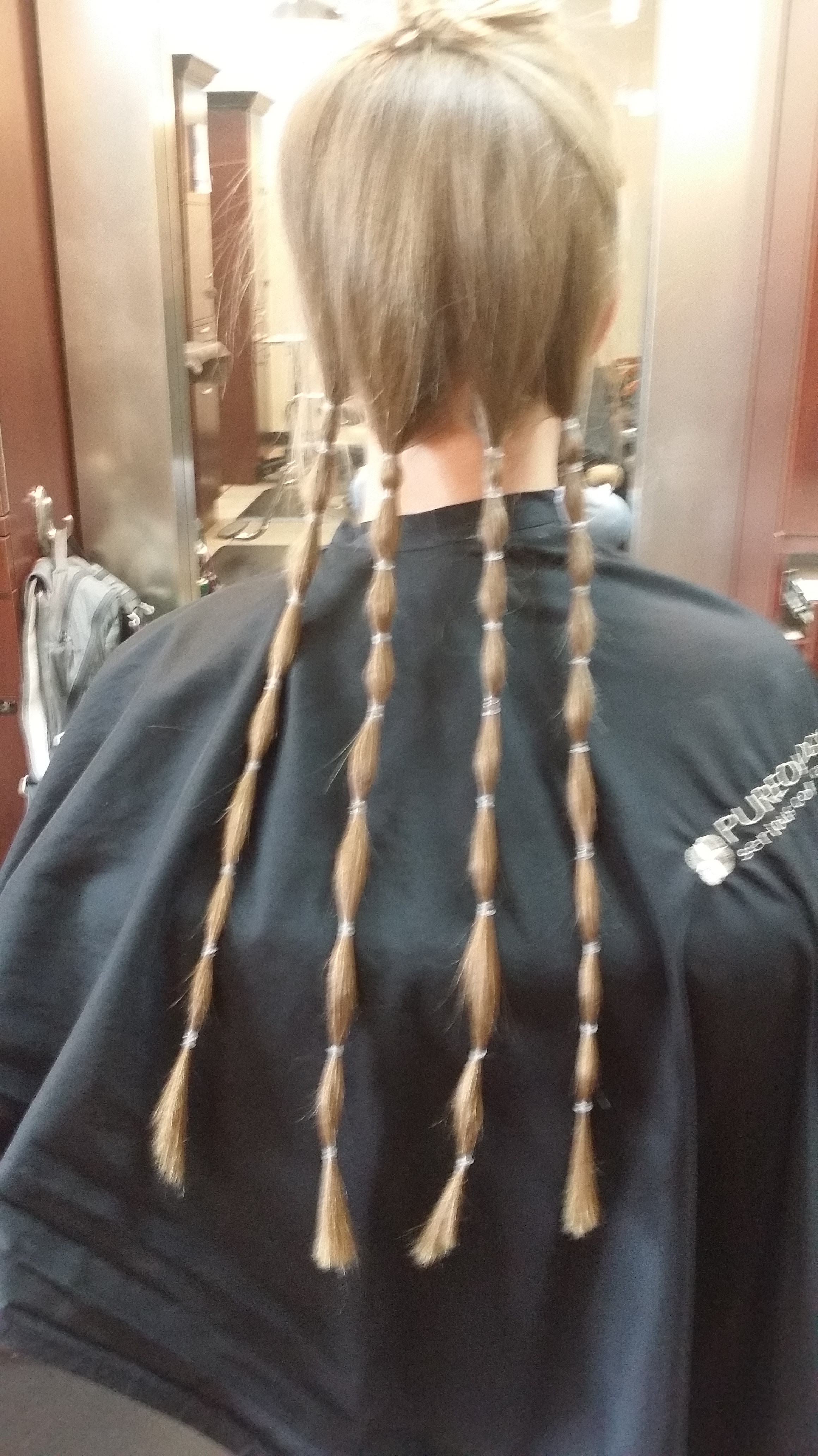 However, I do cut long hair off of Clients to send to Wig Companies who make wigs for Children going through hairloss trauma.